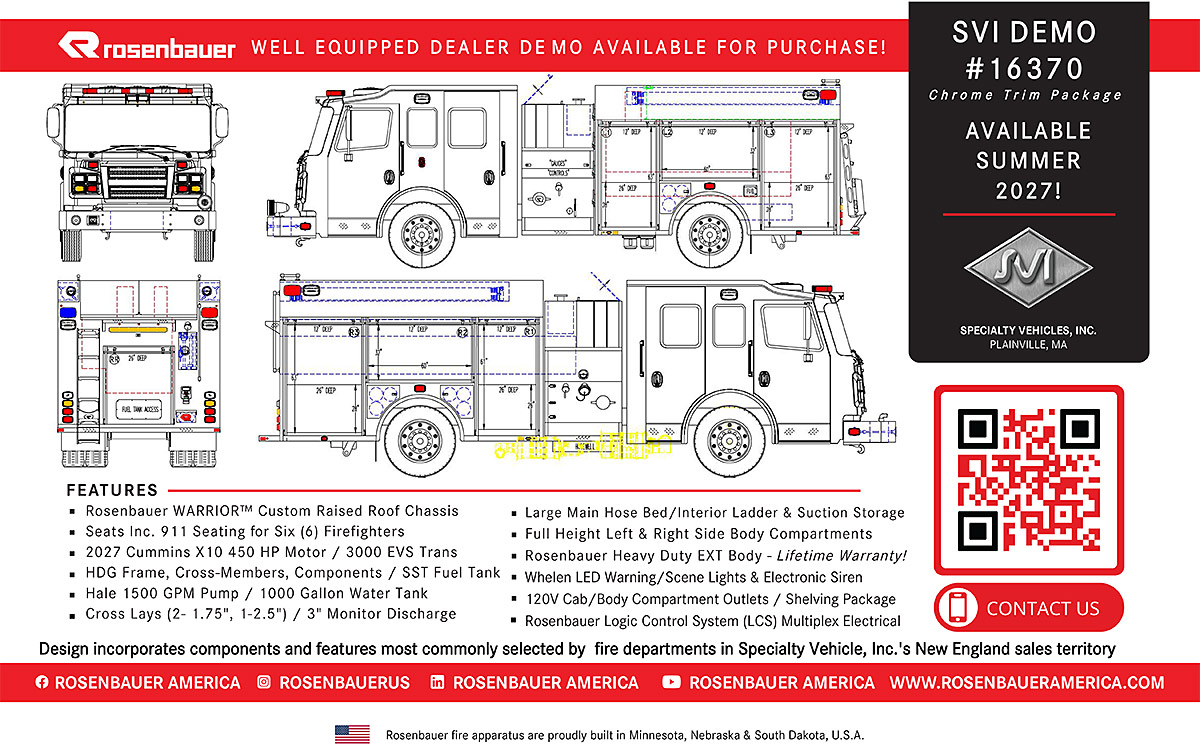 2027 Rosenbauer Warrior 1000 Gallon EXT Custom Pumper – Chrome Package ~ Available Summer 2027