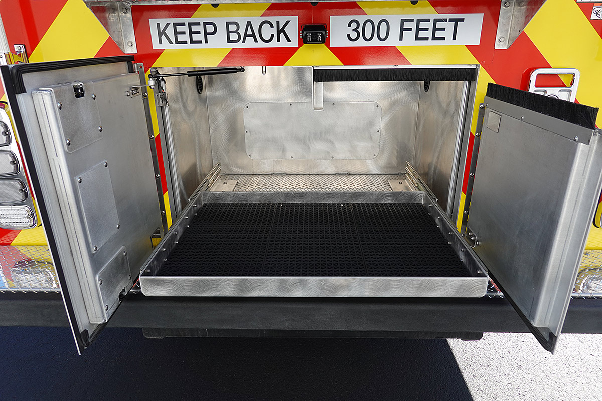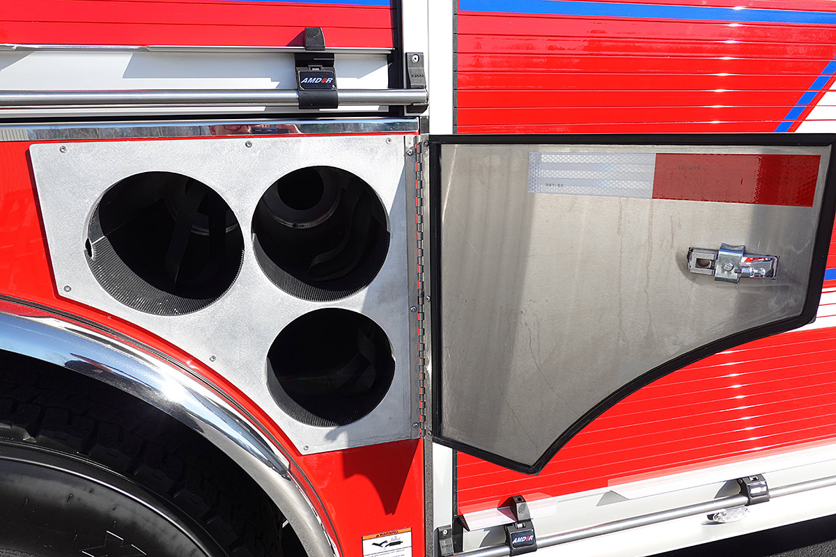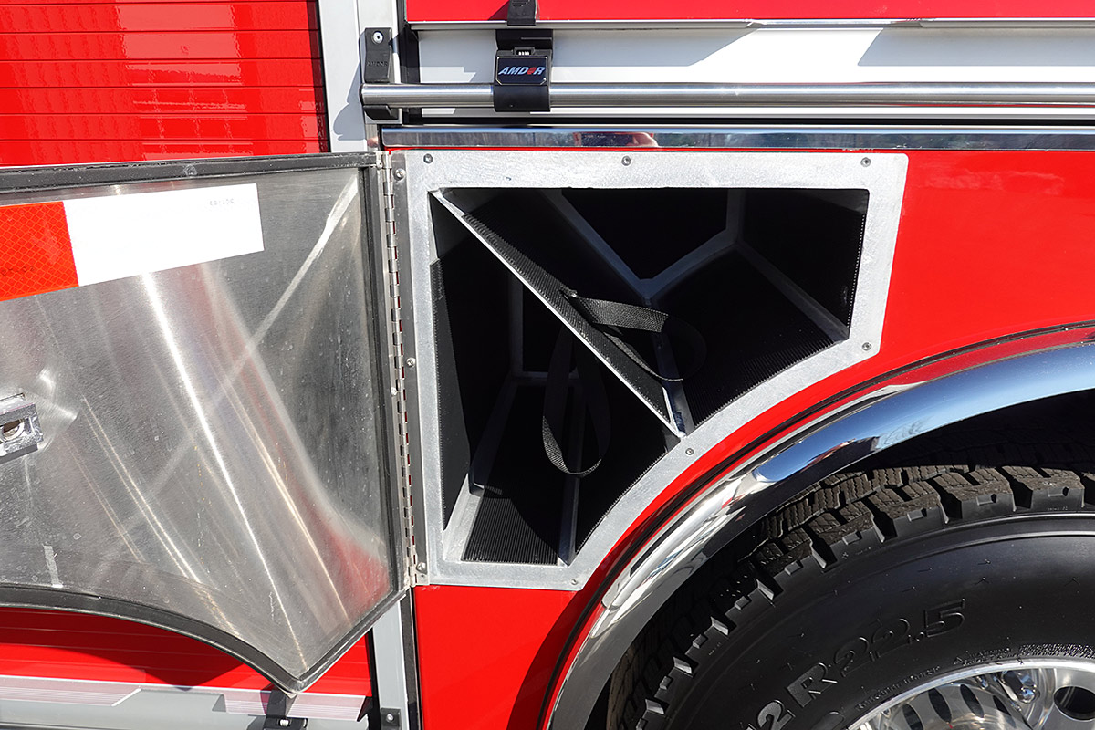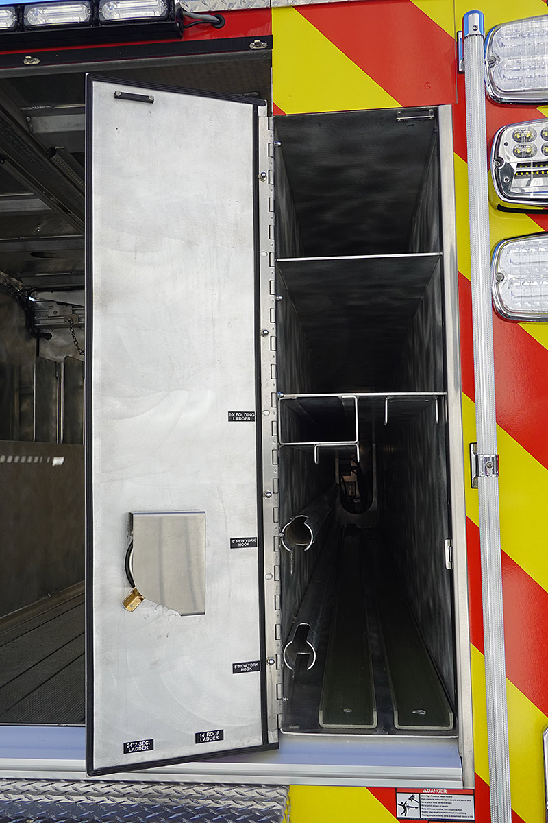 – Interior ground ladder/hard suction storage
