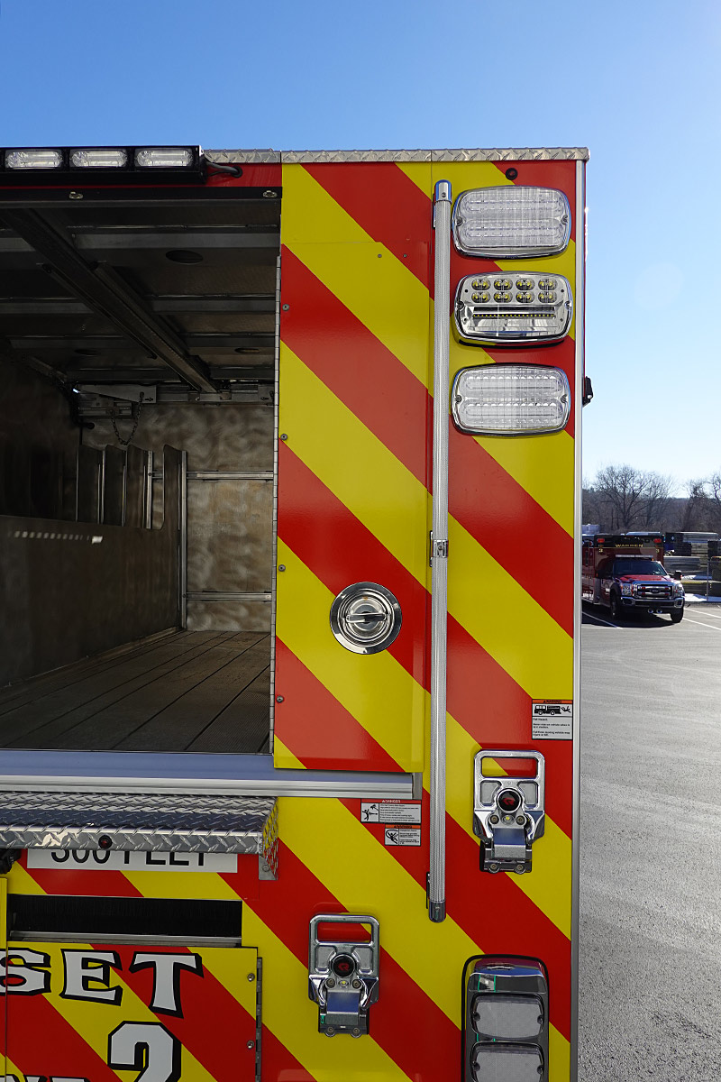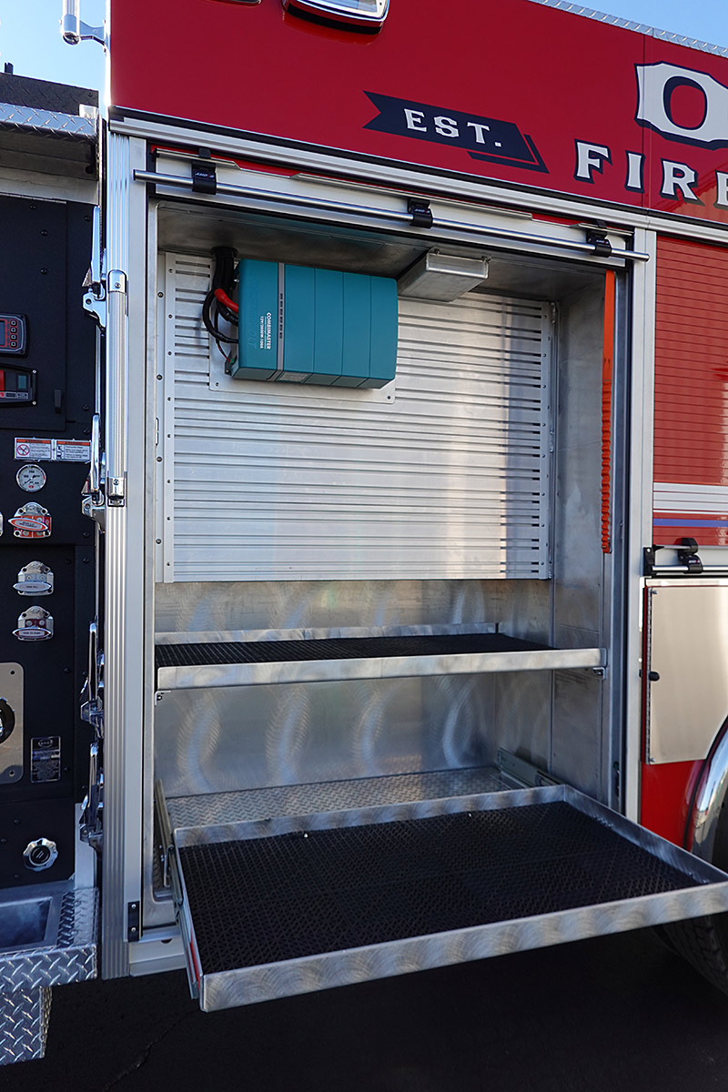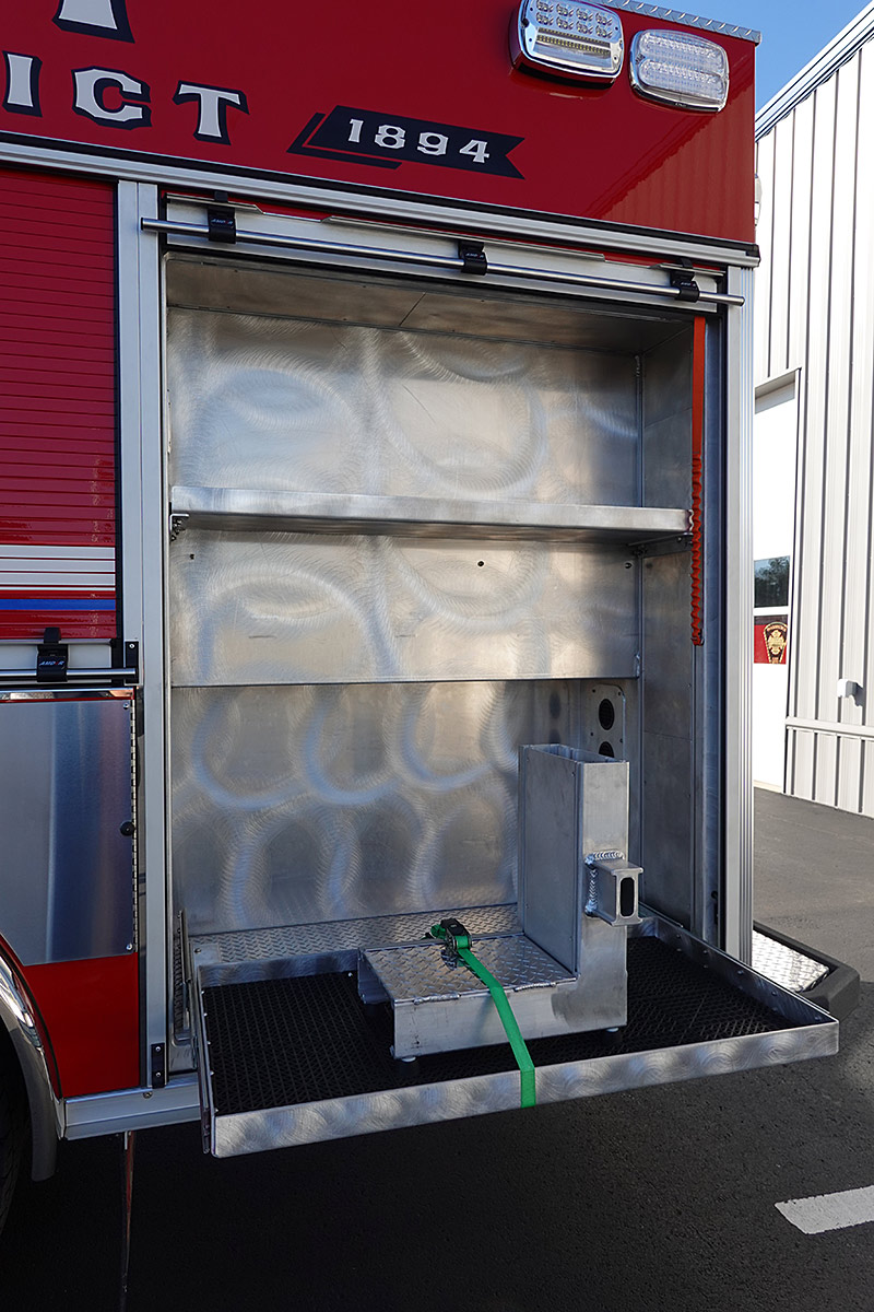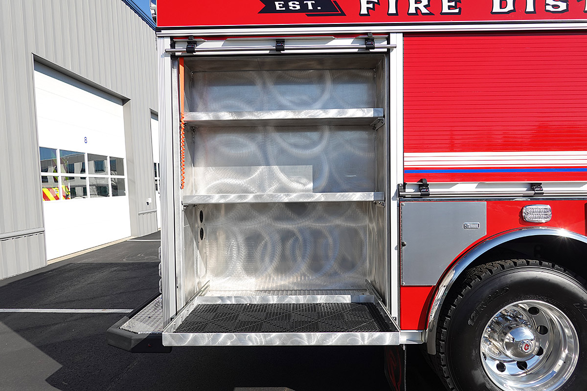 – Interior ground ladder/hard suction storage